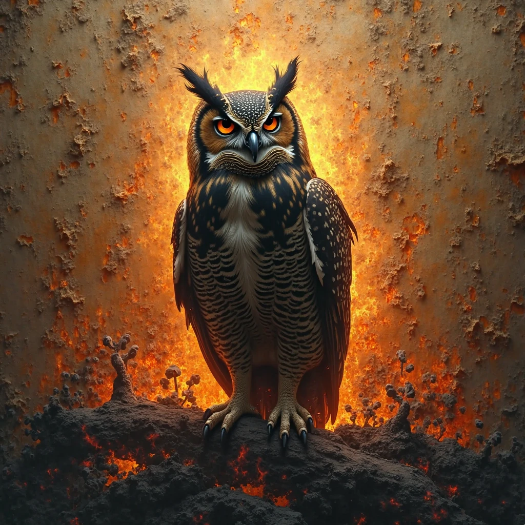 Силуэт совы из выжженной бумаги с замысловатыми деталями из перьев