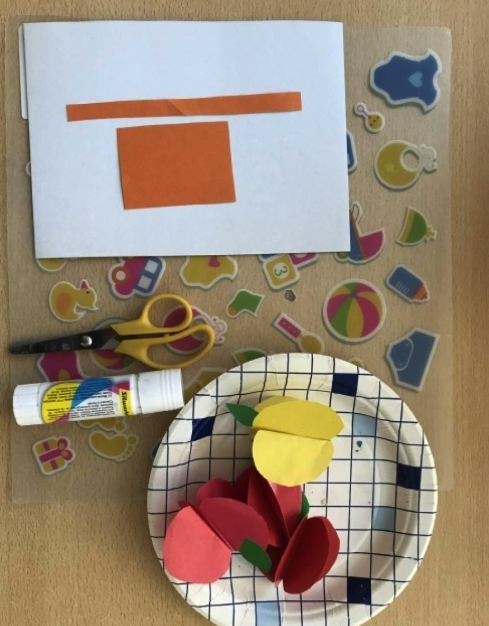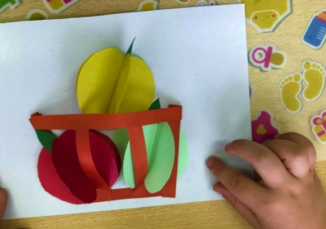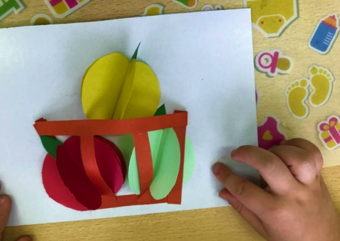 Keranjang yang sudah jadi berbentuk tiga dimensi dan apelnya bisa dikeluarkan dan dimasukkan kembali, seperti halnya keranjang sungguhan. Karya ini mengembangkan pemikiran spasial, ketelitian dan imajinasi kreatif.