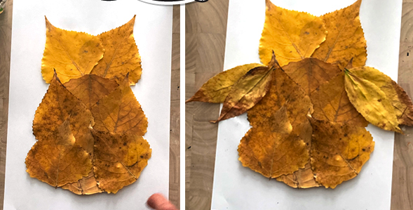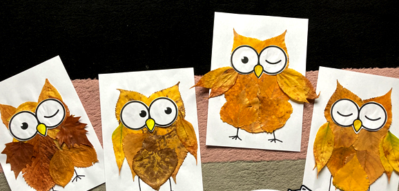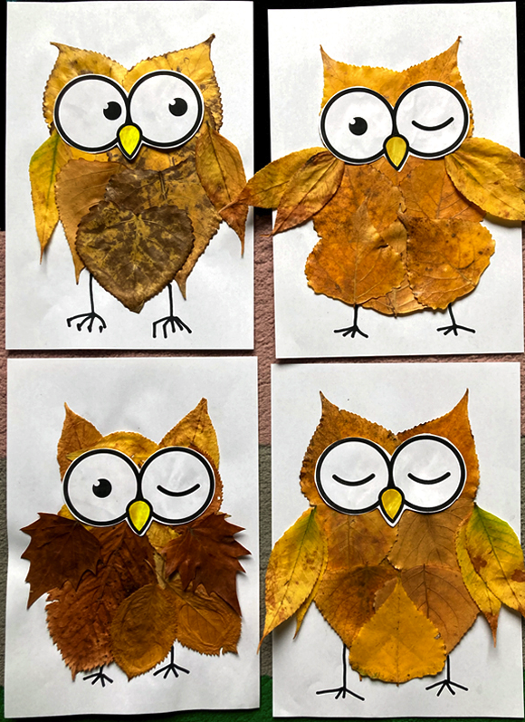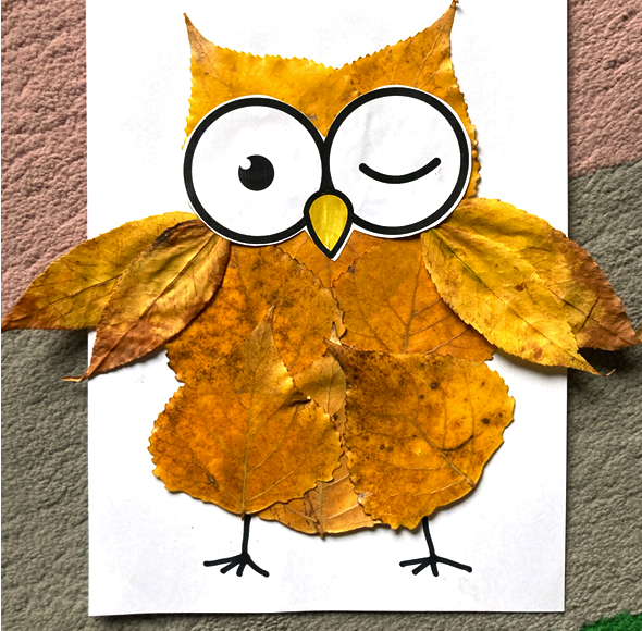È difficile immaginare un gufo senza occhi espressivi. Ritagliate due cerchi di carta bianca di circa 3 centimetri di diametro. Si può ricalcare il coperchio di una bottiglia di plastica. Poi, due cerchi leggermente più piccoli di carta gialla o arancione. Al centro, due cerchi neri (pupille). Incollateli uno sull'altro: bianco, poi giallo, poi nero. In questo modo si ottiene un occhio.