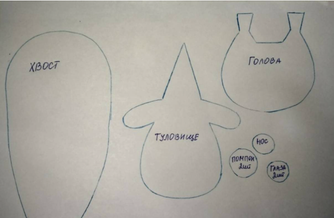 Хвост приклеивается к спине под углом. Можно добавить узор или кисточку из другого цвета.