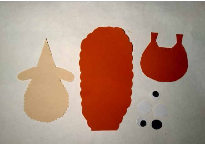 Хвост — самая эффектная часть белки. Вырежьте большой завиток из оранжевой бумаги, напоминающий букву «С» или половину сердечка. Для объёма склейте два одинаковых хвоста между собой, а внутрь вставьте полоску ваты или согнутой бумаги. Конструкция становится пышной и объёмной.