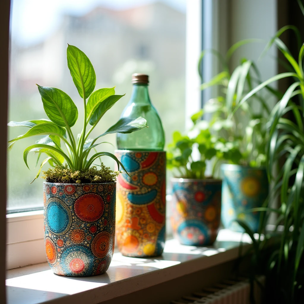 - Кашпо для цветов — если разрезать бутылку и раскрасить её, получится оригинальный горшок.