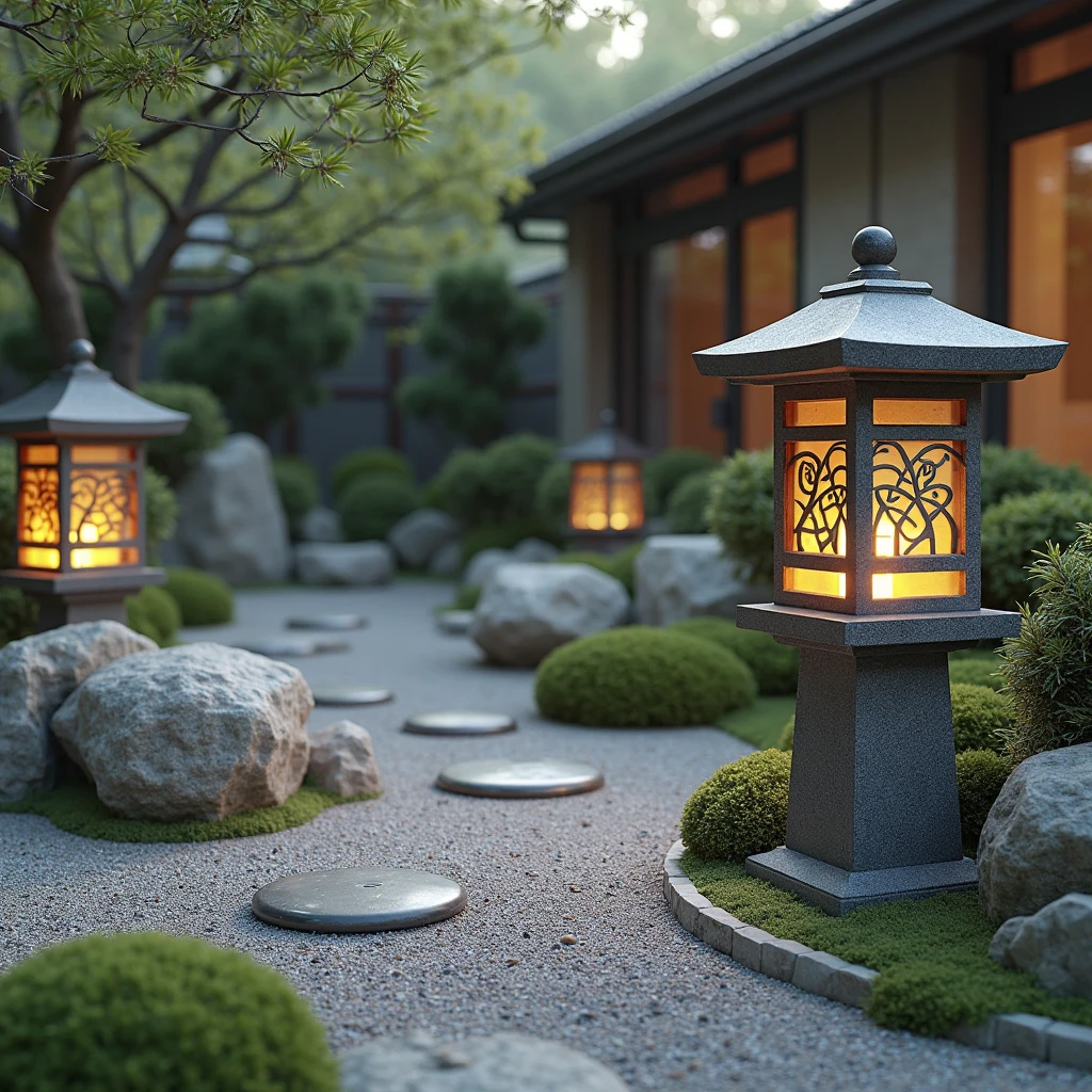 - Садовые фонари в стиле дзен.