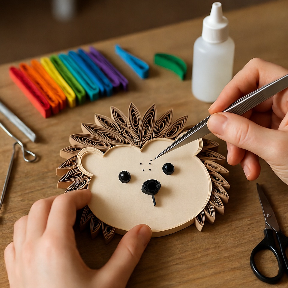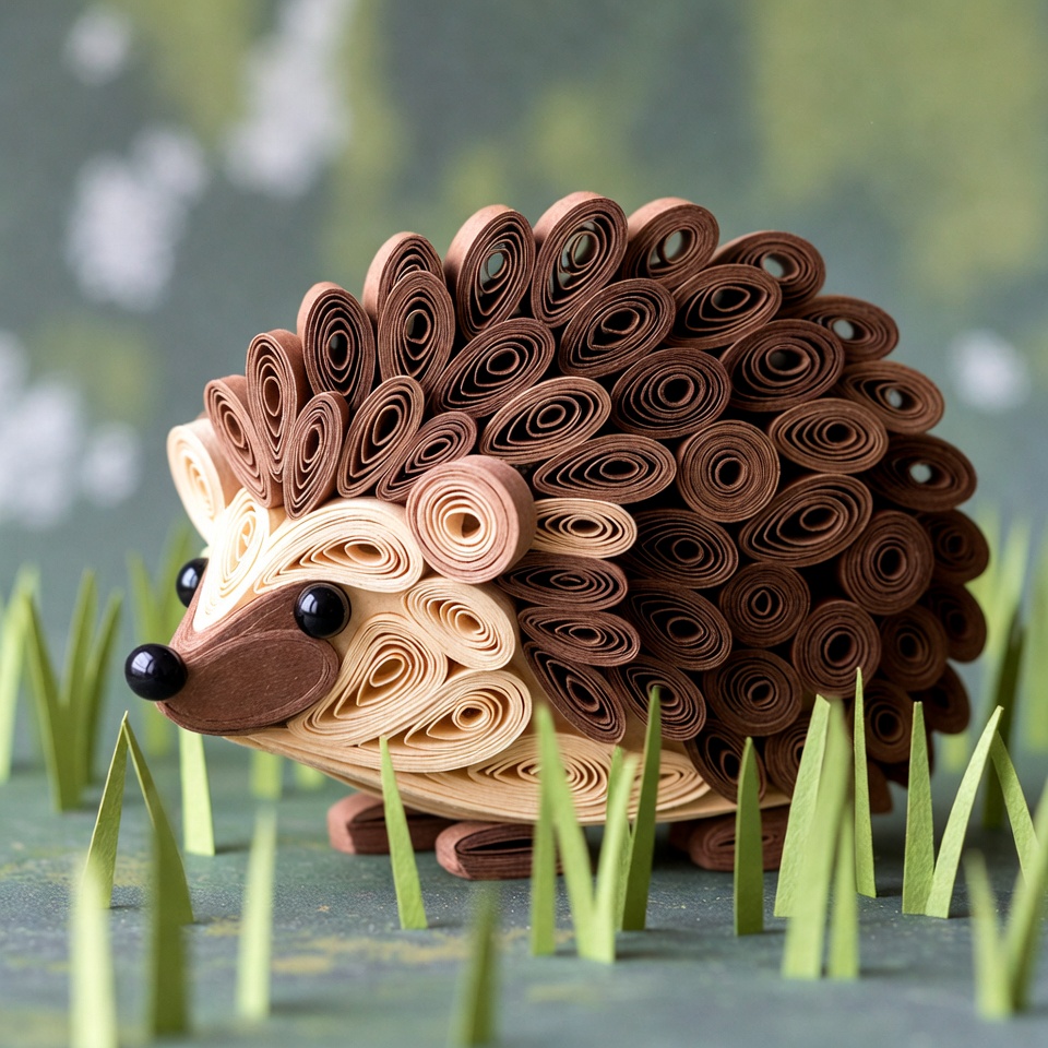 Квиллинг, или бумагокручение, — это техника создания композиций из скрученных в спирали бумажных полос. Она идеально подходит для изображения ёжика благодаря возможности передать его колючую, но одновременно мягкую текстуру. Закрученные бумажные ленты прекрасно имитируют иголки, а плавные формы туловища отлично получаются из плотных спиралей.
